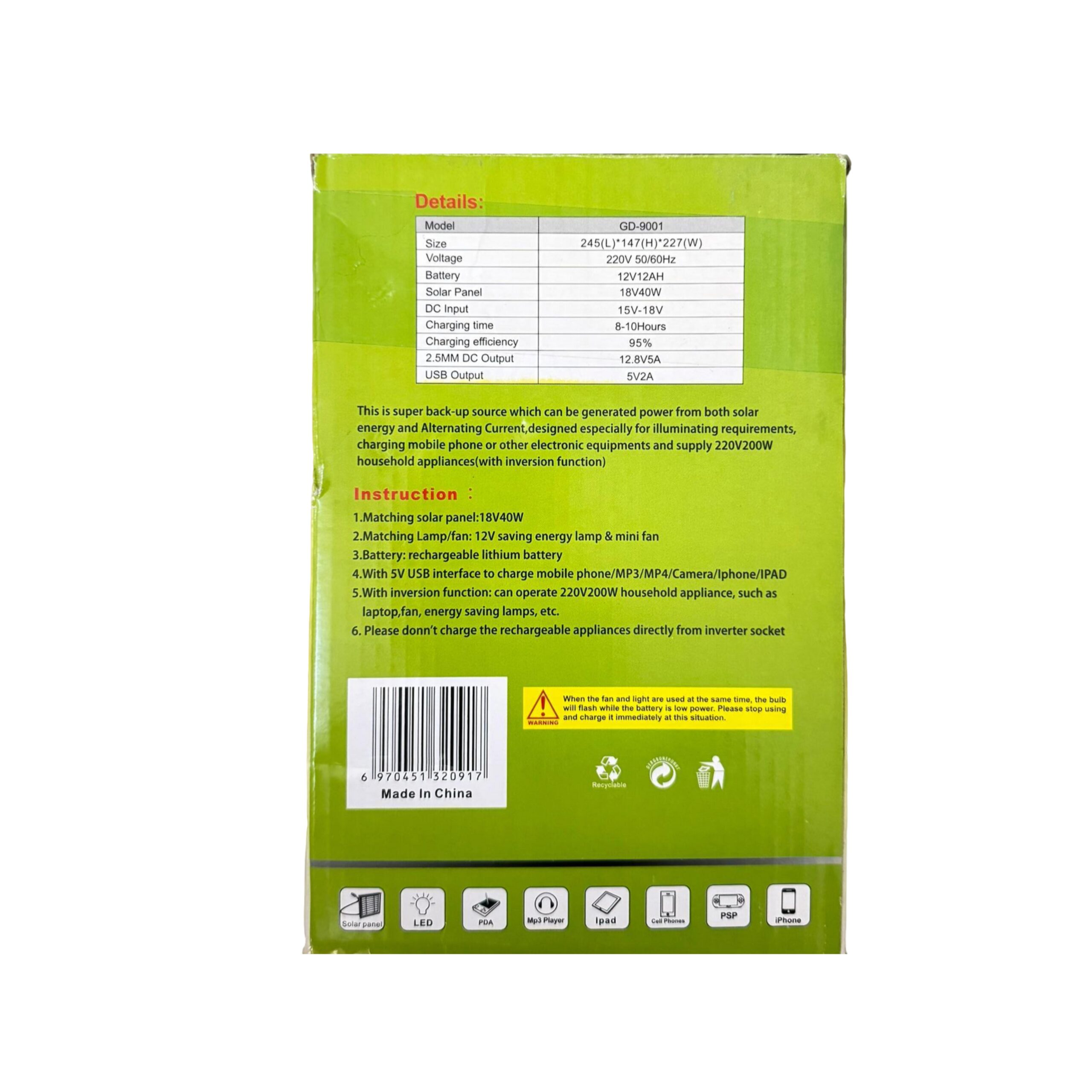 Power bank PC et TV 220V avec Panneau 40W